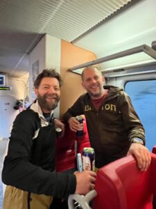 Also rein in den 8-Uhr-Zug ab Sattledt! Mit knapp 30 Leuten (und jeder Menge Kids im Gepäck) ging’s am Samstag, den 7. Februar 2026, ganz gechillt mit der Almtalbahn und dem Skibus zur Talstation. Entspannter kann man eigentlich nicht anreisen.