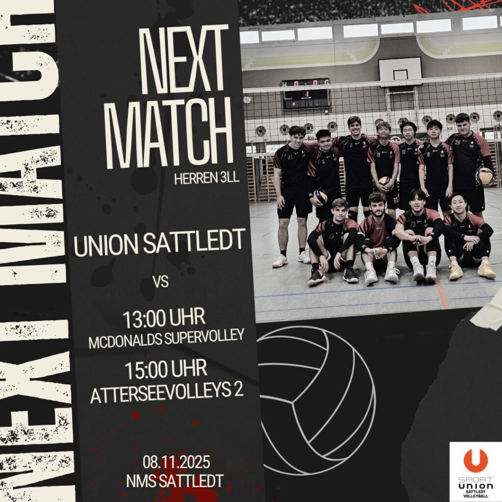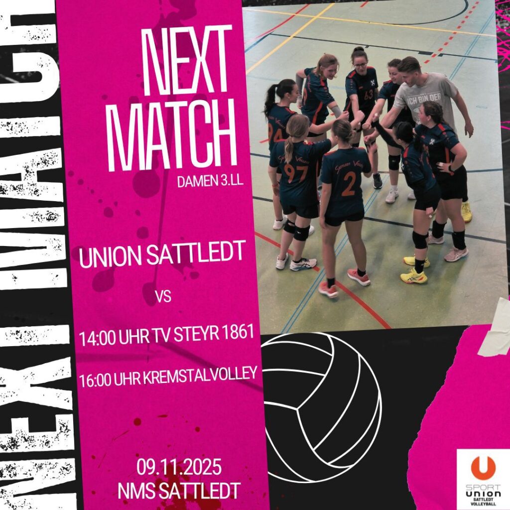Ein echtes Volleyball-Highlight steht bevor: Am Wochenende des 8. und 9. November dürfen sich alle Fans auf ein Heimspielwochenende in der NMS Sattledt freuen! Sowohl unsere Herren- als auch unsere Damenmannschaft starten in ihre Heim- bzw. Saisonpremieren und freuen sich auf lautstarke Unterstützung.